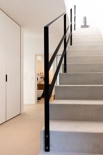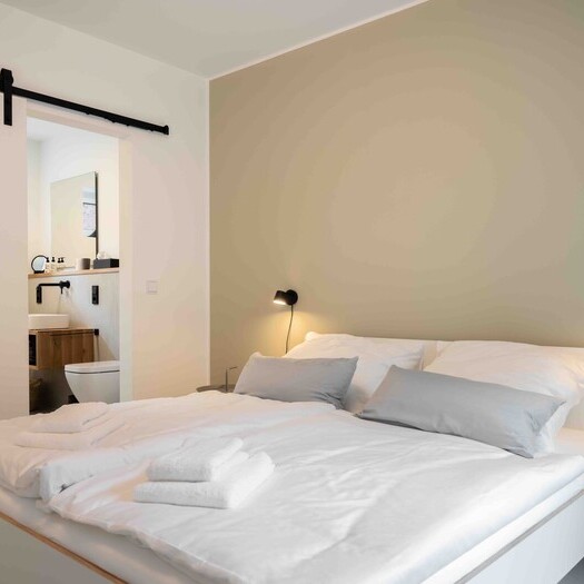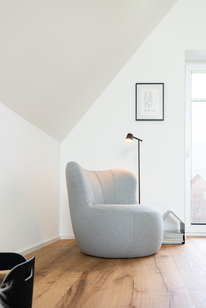 Parquet in rovere oliato, superfici minerali e linee pulite caratterizzano gli interni. Il concept degli interni è stato sviluppato da Heike Meinen con un raffinato senso delle proporzioni, dei materiali e dell'atmosfera. Mobili su misura si affiancano a mobili di design selezionati; tonalità naturali e forme essenziali creano un ambiente tranquillo, di ispirazione nordica.