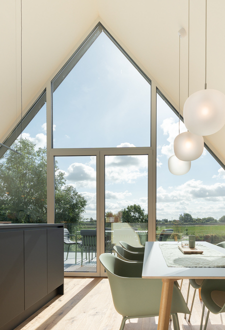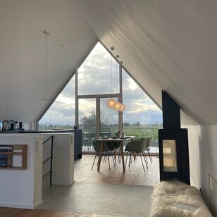 Soprattutto nelle giornate ventose del Mare del Nord, il camino diventa il fulcro dell'atmosfera, creando quell'accogliente profondità che rende completa l'architettura.