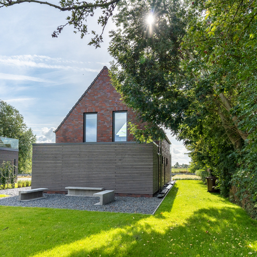 Il clinker locale proveniente da una fabbrica di Wittmund, il legno di larice non trattato e i mobili su misura realizzati da artigiani regionali caratterizzano l'aspetto dell'edificio.